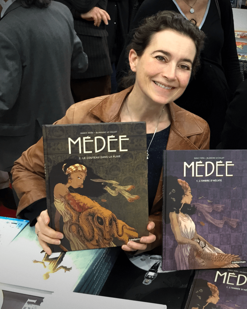 - Scénario de bande dessinée – Médée. t. 1 : L’ombre d’Hécate ; t. 2 : Le couteau dans la plaie ; t. 3 : L’épouse barbare ; t. 4 : La chair et le sang. Illustrations de Nancy Peña, Paris, Casterman, (illustrations de Nancy Peña), Paris, Casterman, 2013-2019.