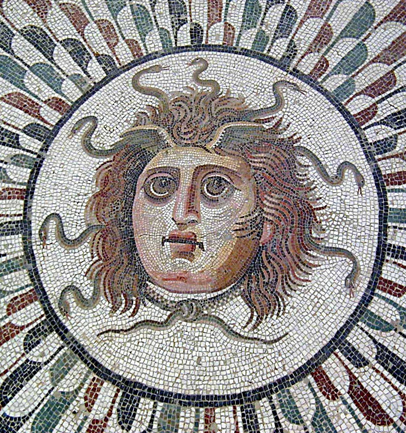 - des Gorgones, de serpents, de monstres, de laideur et de marginalité ; du héros Persée, de la rivalité entre Athéna et Poséidon, du poète Ovide et de métamorphoses.